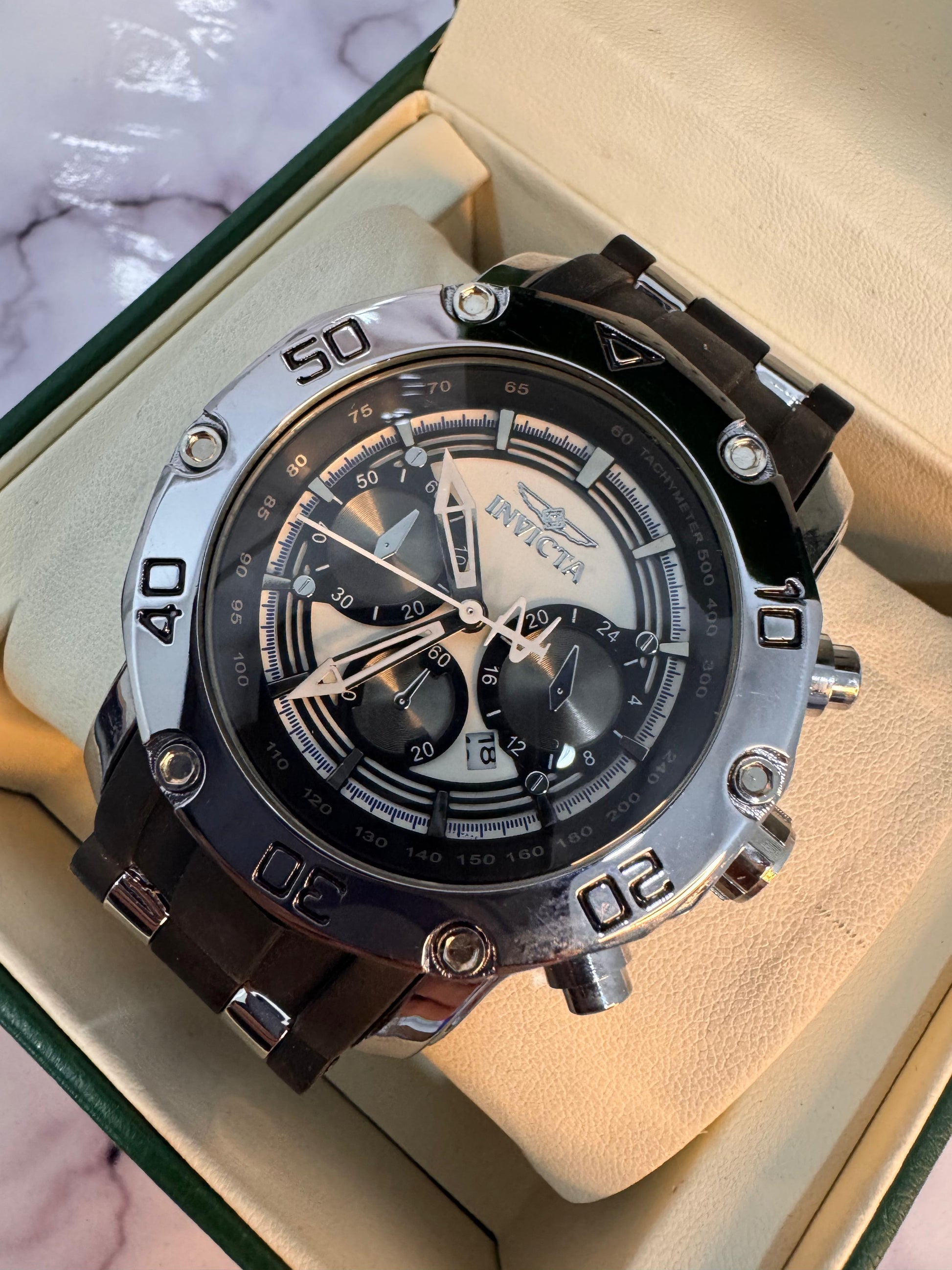 Este reloj Invicta combina diseño imponente con funcionalidad. Su cristal de alta resistencia protege la carátula de rayones y golpes, mientras que el pulso en goma brinda comodidad y durabilidad, ideal para el uso diario o actividades deportivas. Incluye calendario integrado para que no pierdas detalle de tus días. Un reloj que destaca por su estilo y rendimiento.