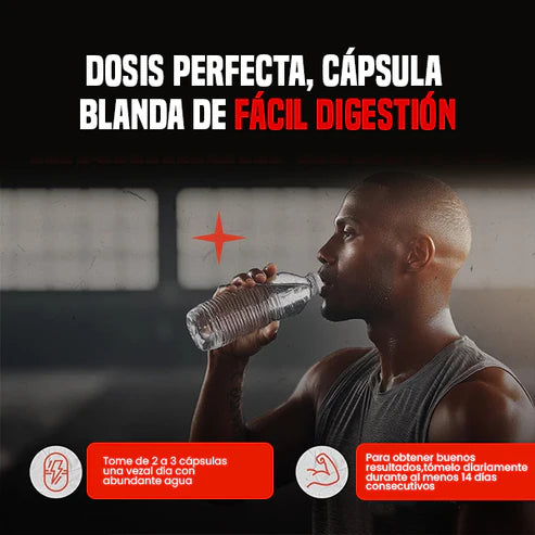 Con solo una cápsula al día, aportas a tu cuerpo lo necesario para construir fuerza real, aumentar la resistencia física y mejorar la absorción de nutrientes, permitiendo que cada entrenamiento se refleje en resultados visibles